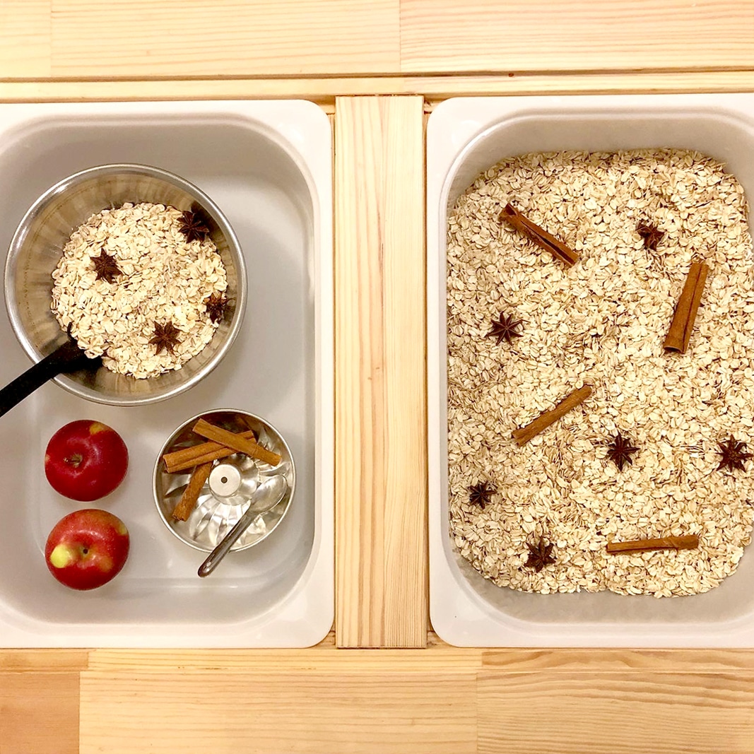 (Inspiration merci à fantastischer_raum pour cette idée de jeu sensoriel d’automne super simple, mais magnifique.)