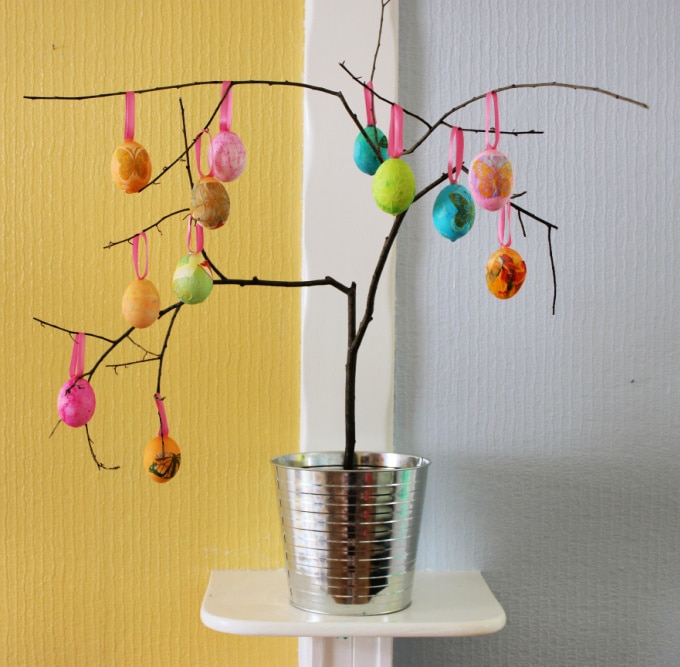 Si vous cherchez quelque chose à faire avec tous ces beaux œufs, un arbre à œufs de Pâques est l’idée parfaite ! Il est facile à assembler et crée un joli centre de table pour Pâques.