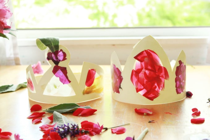 Utilisez des fleurs fraîches pour créer de magnifiques couronnes et colliers de fleurs en papier pour les enfants. Parfait pour les fêtes d’anniversaire ou pour se déguiser !