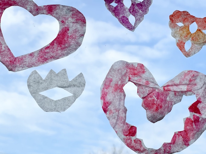 Cette idée vient de notre art de la Saint-Valentin, mais elle est amusante à tout moment de l’année. Peignez des napperons en papier en forme de cœur pour créer une guirlande vibrante et colorée que vous voudrez accrocher tout au long de l’année !