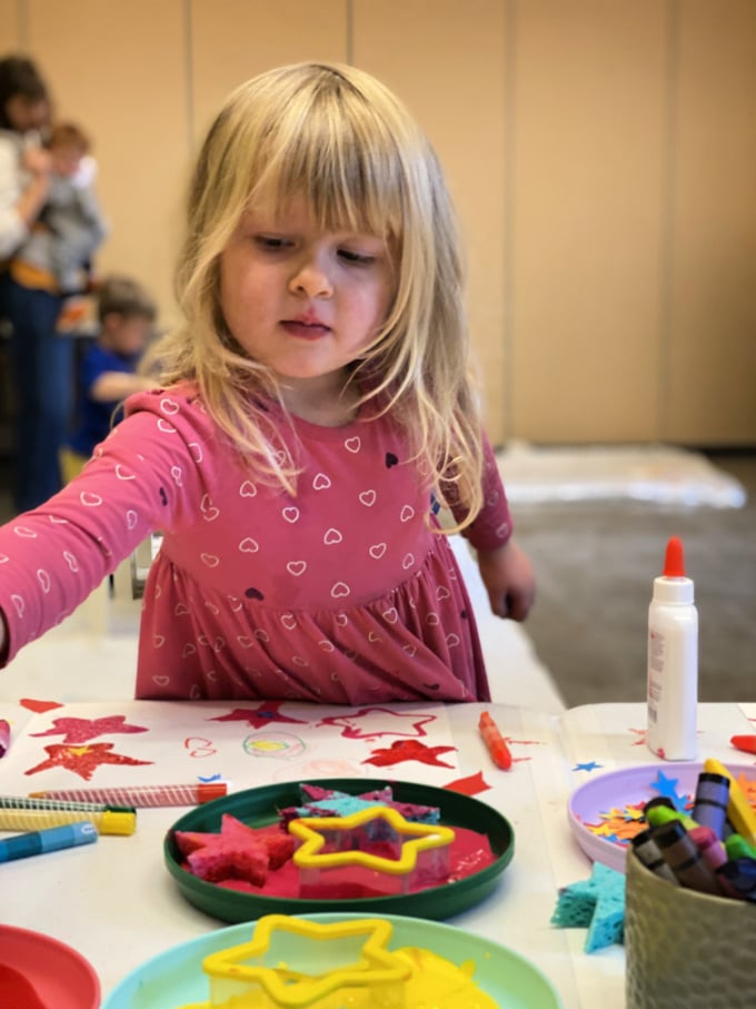Essayez la peinture à l’éponge en forme d’étoile pour un projet artistique mixte de Noël ! Les enfants peuvent peindre à l’éponge et faire du collage dans le cadre de cette activité artistique amusante.