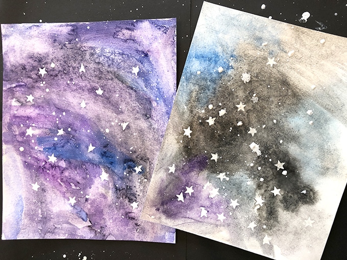Ici, à The Artful Parent, nous faisons beaucoup d’aquarelles. Nous avons essayé trois de nos techniques d’aquarelle préférées avec une touche spatiale amusante.