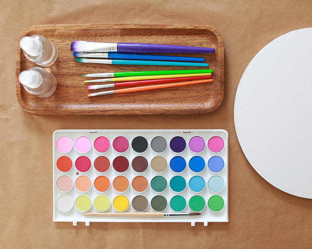 Astuce : pour ouvrir le papier aquarelle circulaire, repérez l’espace dans la colle sur les bords. Faites glisser un couteau fin et tranchant ou un coupe-papier sur le tampon pour libérer un morceau de papier. Si vous avez plusieurs enfants, détachez quelques morceaux à l’avance.