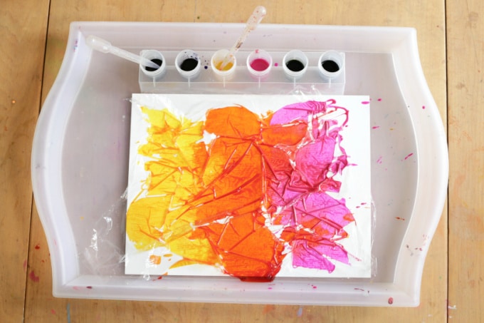 Ou, comme mes enfants aimaient le faire, appliquer un morceau de Saran Wrap plat et le froisser directement sur le papier.