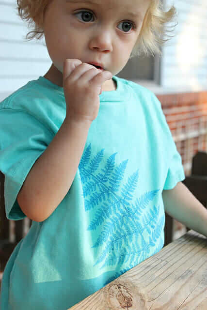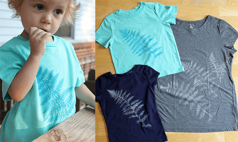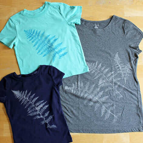 J’ai fait des t-shirts imprimés de fougères pour moi, Maia et Daphne.