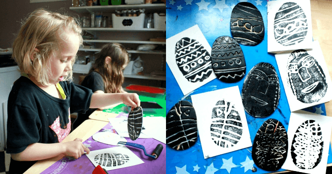 - Imprimerie en polystyrène avec les enfants pour Pâques