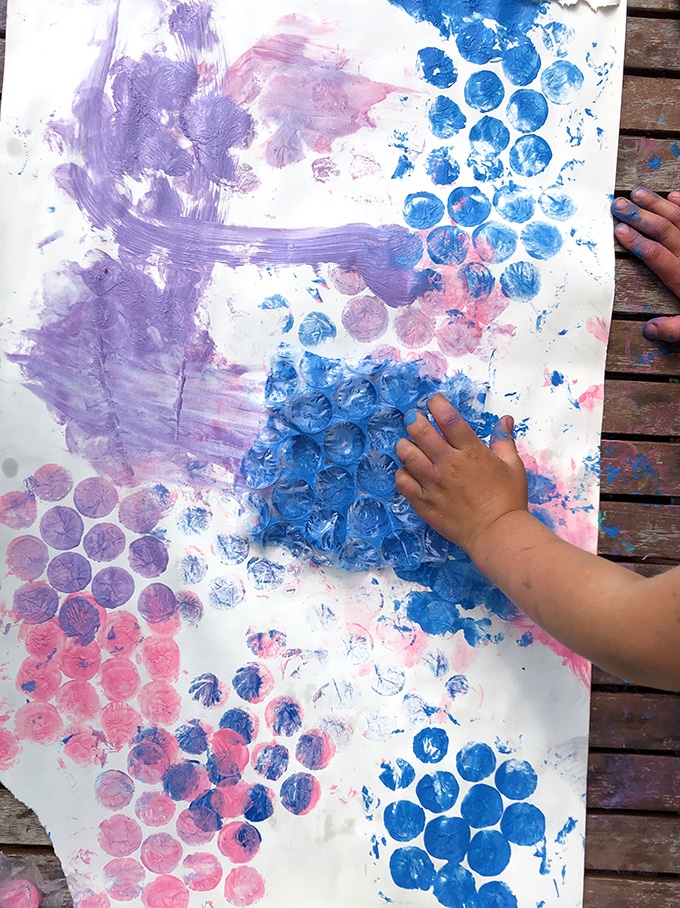 Voir Impression et peinture sur papier bulle pour d’autres idées de peinture avec les petits.