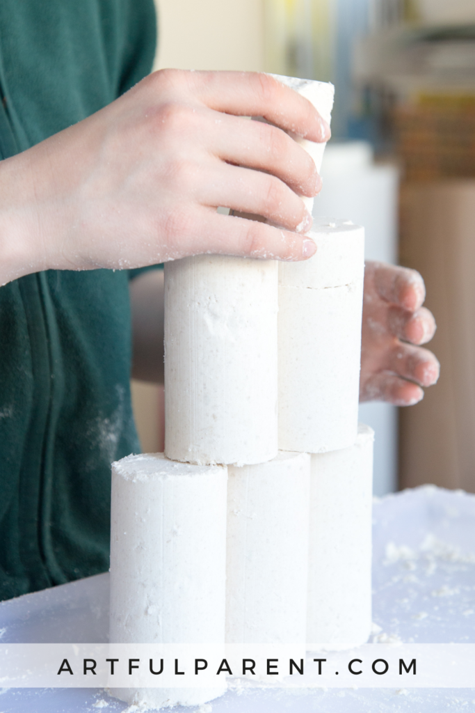 Nous n’avons pas l’habitude de considérer la pâte à modeler comme un matériau sensoriel, mais c’est pourtant le cas ! Les enfants peuvent pétrir et mouler la pâte, la rouler en boules et en serpents, y enfoncer leurs doigts et l’écraser entre leurs mains.