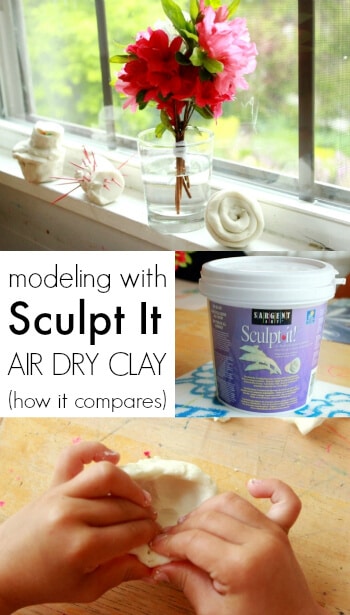 J’avais acheté l’argile sèche à l’air Sculpt-It juste pour expérimenter. Je n’avais pas de grandes attentes, mais je voulais essayer. Je savais à quel point nous aimions la pâte à modeler ordinaire (que nous laissons sécher à l’air libre) et la pâte à modeler Model Magic (même si elle se casse trop facilement après avoir séché).