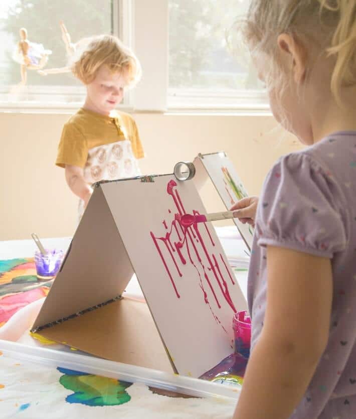 3. Si vous voulez essayercouléePour peindre à partir d’un gobelet sur un chevalet vertical, consultez cet article sur Childhood 101.