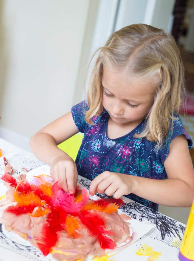 Nous ne sortons pas toujours ce matériel artistique duveteux, mais chaque fois que nous le faisons, nos enfants s’amusent tellement avec !