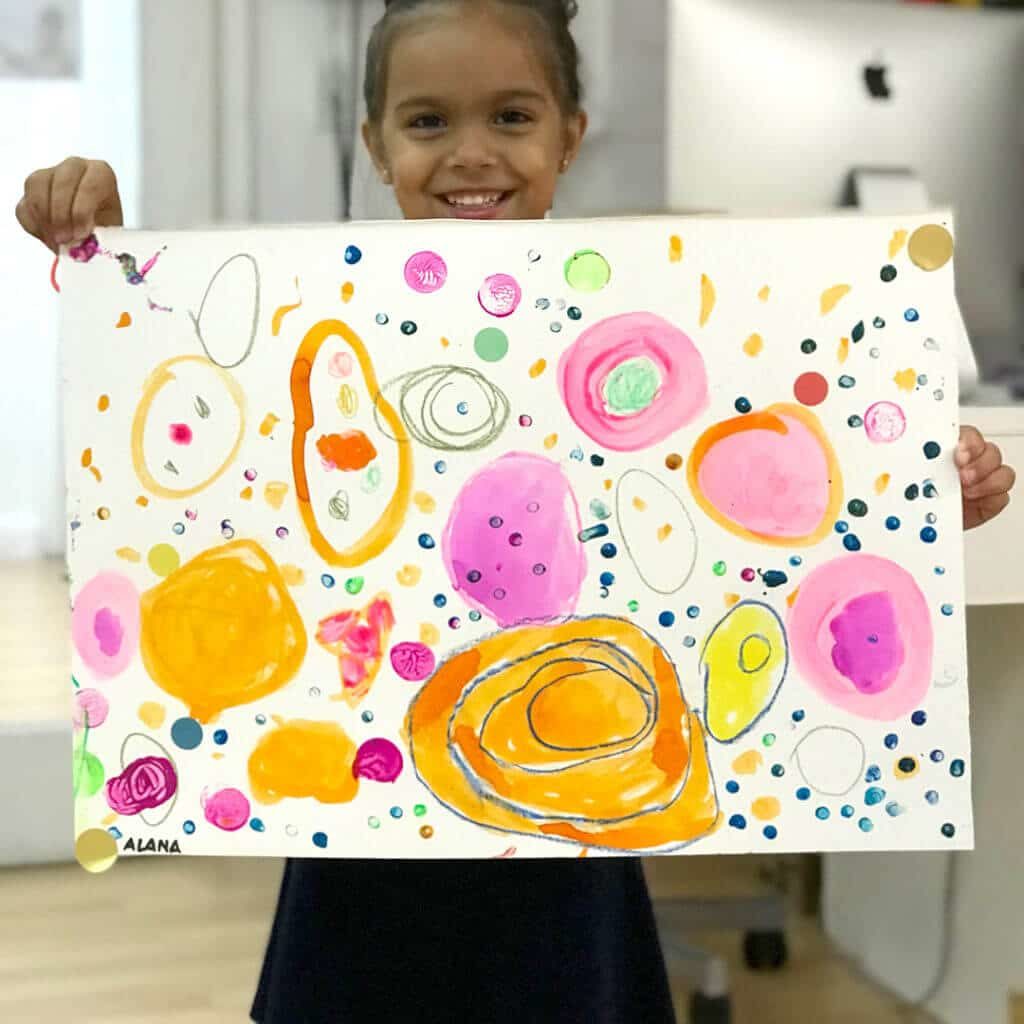 C’était notre point de départ lorsque je leur ai expliqué que nous allions nous concentrer sur les cercles, comme l’a fait Kusama. Nous ferions toutes sortes de cercles de tailles et de couleurs différentes en utilisant différentes techniques.